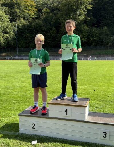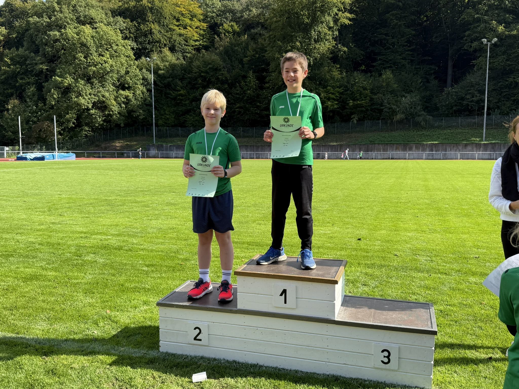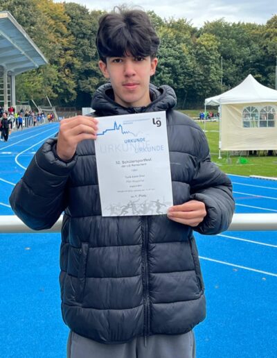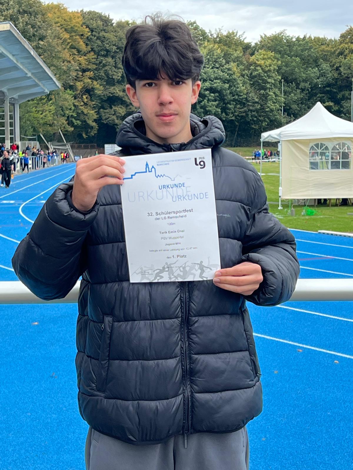 Zum Abschluss der Bahnsaison gelangen dem PSV in Remscheid noch zwei Siege, viele gute Platzierungen und etliche persönliche Bestleistungen. Topsprinter Tarik Ünal (M14) zeigte seine Klasse über 100m trotz 3,65m/s Gegenwind mit einer Zeit von 12,47s und Platz eins. Clara Levering (W11) musste in der W12 antreten, um am Kugelstoßen und Speerwurf teilnehmen zu können. Gegen die ein Jahr ältere Konkurrenz gelangt ihr das mit zwei Bestleistungen ganz hervorragend. Sieg mit der Kugel und tollen 7,62m und ein guter 5. Platz mit 17,11m mit dem Speer. Schade, dass sie sich in Zukunft komplett dem Fußball widmen möchte. Wir wünsche ihr viel Erfolg. Zwei weitere Podestplätze im Speerwurf gab es für die mJU18. Zweiter wurde hier Oliver Schwarzbach mit 32,95m, dritter Jasper Herbeck mit 29,57m. Sebastian Pohl (M12) konnte im Kugelstoßen mit 7,39m (PB) und Platz vier und im Speerwurf mit 25,13m (PB) und Platz 8 überzeugen. In dieser Disziplin war Liam Bösebeck noch einen Tick besser. Mit 25,42m (PB) kam er auf Platz sechs, obwohl er noch der M11 angehört. Elias Espanion (M12) hatte sich im Hochsprung eine bessere Leistung erhofft. Bei den niedrigen Temperaturen musste er sich mit einer übersprungenen Höhe von 1,28m und Platz 6 zufriedengeben. Nico Schauer (M11) zeigte sich mit seinen Leistungen unzufrieden. Platz fünf im Ballwurf mit 32m und Platz sechs in 8,58s im 50m-Sprint bei starkem Gegenwind stellten bei den großen Teilnehmerfeldern trotzdem beachtliche Platzierungen dar. Bei den Jüngsten gelang Clemens Pohl (M10) im Ballwurf mit 27m eine neue Bestleistung, was zum 6. Platz reichte. Insgesamt ein schöner und erfolgreicher Abschluss der Bahnsaison. Sehr erfreulich die Leistungen im Speerwurf. Hier trägt das Spezialtraining durch unseren früheren Spitzenwerfer Jan Bösebeck erste Früchte.