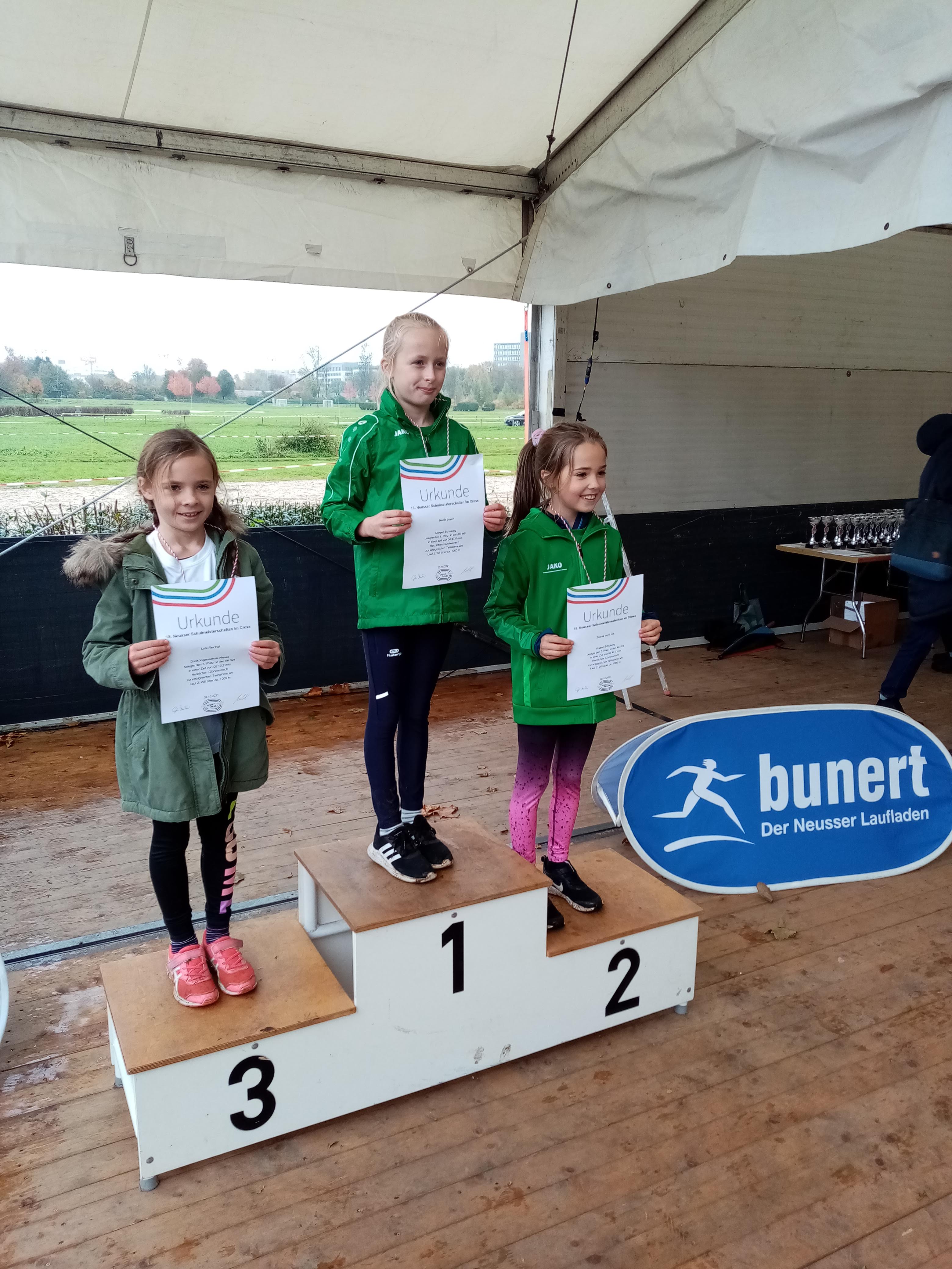 Im Dauerregen von Neuss ging der PSV mit einigen Läufern/innen an den Start. Auf alle wartete eine schwere Strecke. Aufgeweichte Wiese, Unebenheiten, Baumstämme, Heuballen und tiefer, nasser Sand. Alle diese Unwegbarkeiten konnten unsere Läufer/innen nicht von einer tollen Leistung abhalten. Bei der U10 ging unser Duo Sophia und Neele an den Start. Kurz nach dem Start machten sich die Mädels auf und überholten ein Mädchen nach dem anderen. Kurz vor Ende der 1 Runde übernahmen sie die Spitze und setzten sich fortan von den anderen Mädchen immer weiter ab. Neele hatte heute die größere Power und konnte sich mit starkem Schlussspurt von ihrer Freundin Sophia absetzen und das Rennen für sich entscheiden. Kurz nach ihr kam Sophia als 2. ins Ziel. Beide hatten einen riesigen Vorsprung vor der 3. Läuferin.