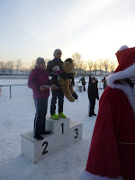 Bei der W12 durfte sogar unser Junior mit aufs Podest, da Lina, die als Erstplatzierte nach ganz oben steigen durfte, unseren Teddy mit zur Siegerehrung nahm.
